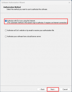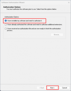 3. Chọn “I have installed my software and need to authorize it.”, ấn “Next”