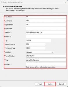 5. Điền các thông tin người dùng, địa chỉ, tổ chức…., ấn “Next”