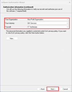 4. Chọn “Authorize with Esri now using the internet. (This automatic method is the easiest way to authorize. It requies an Internet connection.)”, ấn “Next”