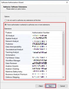 8. Chọn “I have authorization number(s) to authorize one or more extensions” và điền các mã kích hoạt phần mở rộng, ấn “Next”
